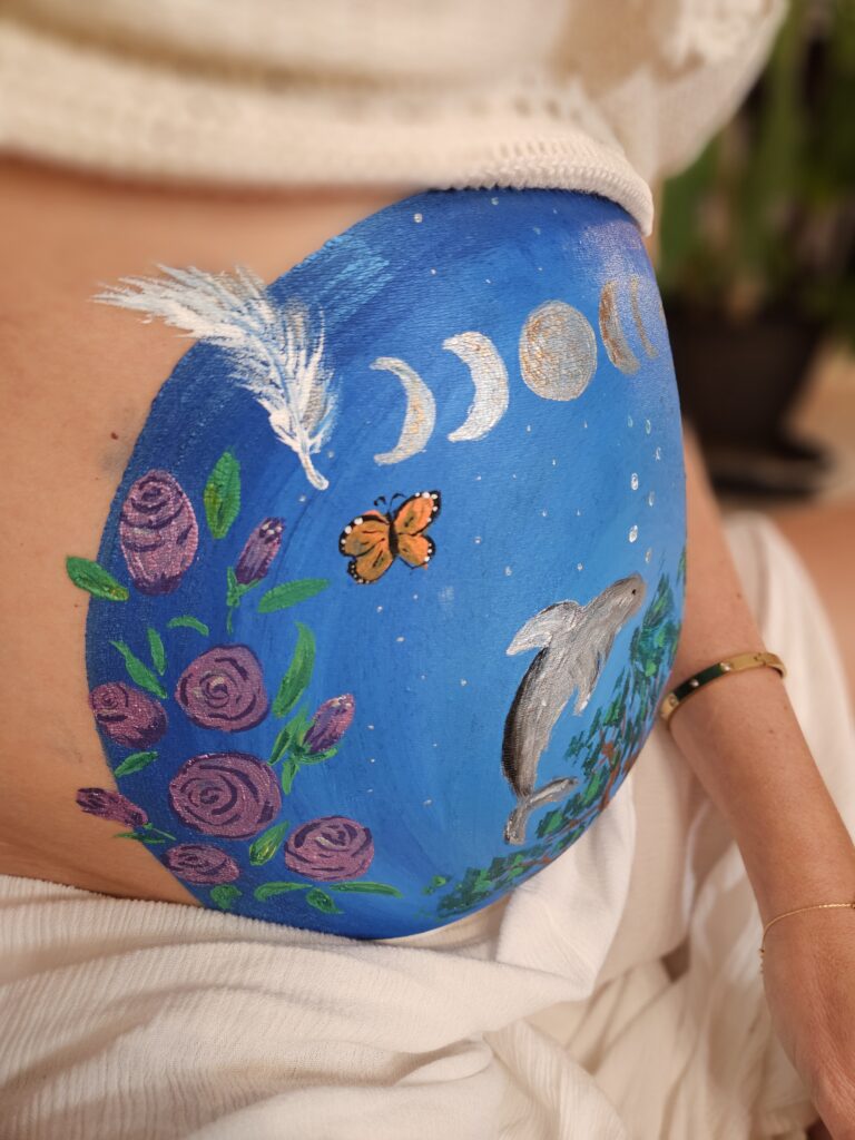 Performing a Mother Blessing Ceremonies is one of the most humbling, beautiful, and serene moments I can think of. The ceremony will include a belly painting of your choosing, using nonchemical face paints, journal prompts for the Mother to be, along with motivational birth affirmations, birth prayer flag and flower wreath. But if you have other wishes, I am happy to work with you to put together a Mother Blessing Ceremony that suits you and your preferences.